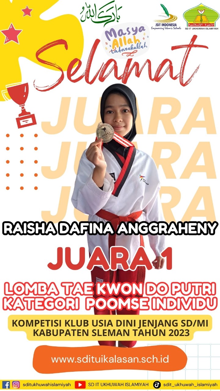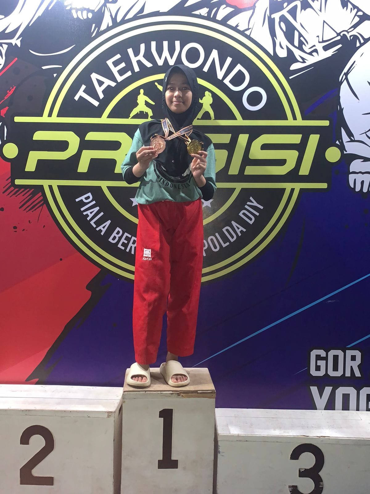 | Juara 2 Tae kwon do kelas cadet poomsae tunggal & double | Raisha Dafina Aggraheny | Kejurkab Bupati Sleman | DIY | 2023 |